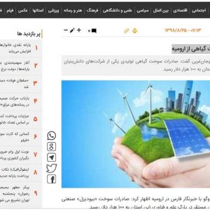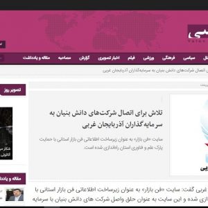 10 May برای نخستین بار در کشور چراغ روکار گندزدای محیط در ارومیه تولید شد 10 May رئیس پارک علم و فناوری استان خبرداد تولید قارچ صدفی رنگی با خواص درمانی در پارک علم و فناوری آذربایجانغربی 10 May ۱۲ شرکت پارک علم و فناوری آذربایجان غربی در زمینه مبارزه با کرونا فعالیت می کنند 16 Nov انتخاب ۶۳ ایده برتر آذربایجانغربی برای ورود به مراکز دانشبنیان 16 Nov نیکبخت مطرح کرد: صادرات ۱۰۰ هزار دلاری سوخت «بیودیزل» از ارومیه 16 Nov صادرات ۱۰۰ هزار دلاری سوخت گیاهی از ارومیه 19 Aug سرپرست پارک علم و فناوری آذربایجان غربی: لزوم حمایت از شرکتها و کارآفرینان مستقر در پارک فن آوری استان 19 Aug برگزاری ۴ رویداد فناورانه ملی به میزبانی ارومیه 04 Aug مهارتآموزان فنی و حرفهای به سمت مشاغل فناورانه هدایت شوند 17 Jul تلاش برای اتصال شرکتهای دانش بنیان به سرمایهگذاران آذربایجان غربی 17 Jul افتتاح واحدهای ۲ مرکز رشد آذربایجانغربی در اولویت است 17 Jul آغاز به کار رسمی کارگزار فن بازار منطقه ای آذربایجان غربی